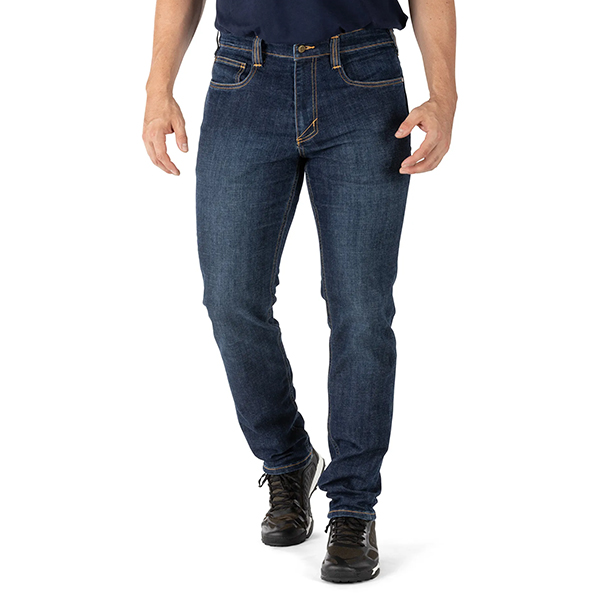 Defender-Flex Slim Jean comes in a slim fit and double-needle construction. It also features comfort in the waistband for inside and outside hand-carry and button top fly with a locking YKK® zipper for secure closure. It also comes in varying shades of indigo.
