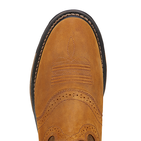 Need a cowboy work boots with a classic Western look? Look no further because WorkHog Pull-on Work Boot from Ariat fits the bill! These 10-inch, soft-toe, electrical hazard-rated, and slip- and oil-resistant work boots feature a roper toe and saddle vamp detailing. You will definitely be working in style in these pull-on work boots!