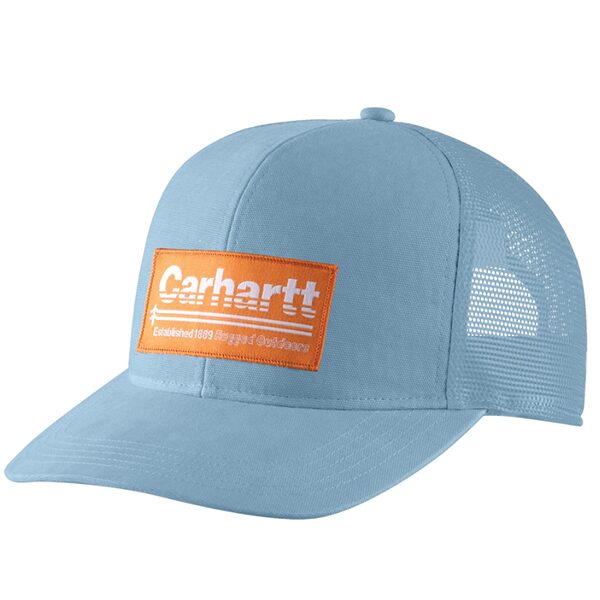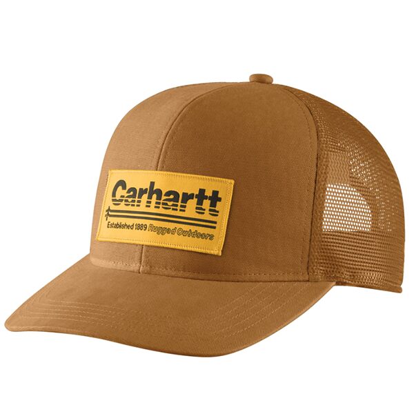 This trucker-style cap for men is a great addition to your workwear wardrobe. The breathable mesh on the sides plus the odor-fighting sweatband inside, provides that quick-drying comfort while you work. This headwear has a medium-structured medium-profile cap, with a pre-curved visor. It also features a Carhartt “Rugged Outdoors” patch on the front and the Carhartt label on the back.