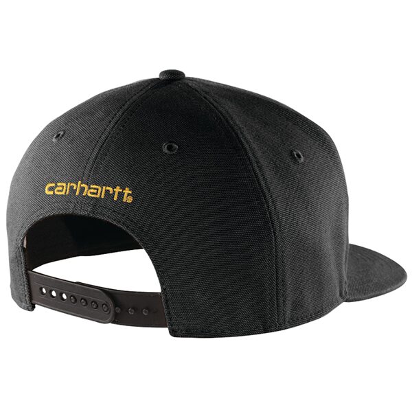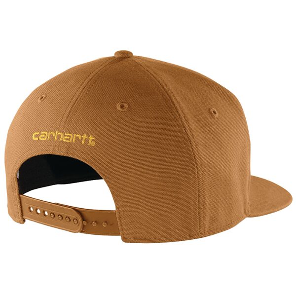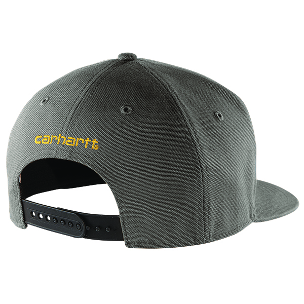 A cap with an edge! This flat brim cap will not only aid in shielding your head and eyes from glare, wind, or dust while working but it will also help in absorbing and managing perspiration with its sweat-wicking sweatband. This cap is made from 100% firm hand cotton duck. It comes with a structured high-profile cap and flat-brim visor. It also has an adjustable fit plastic closure and a Carhartt patch sewn on the front. This flat-brim cap was previously known as the Ashland Cap.