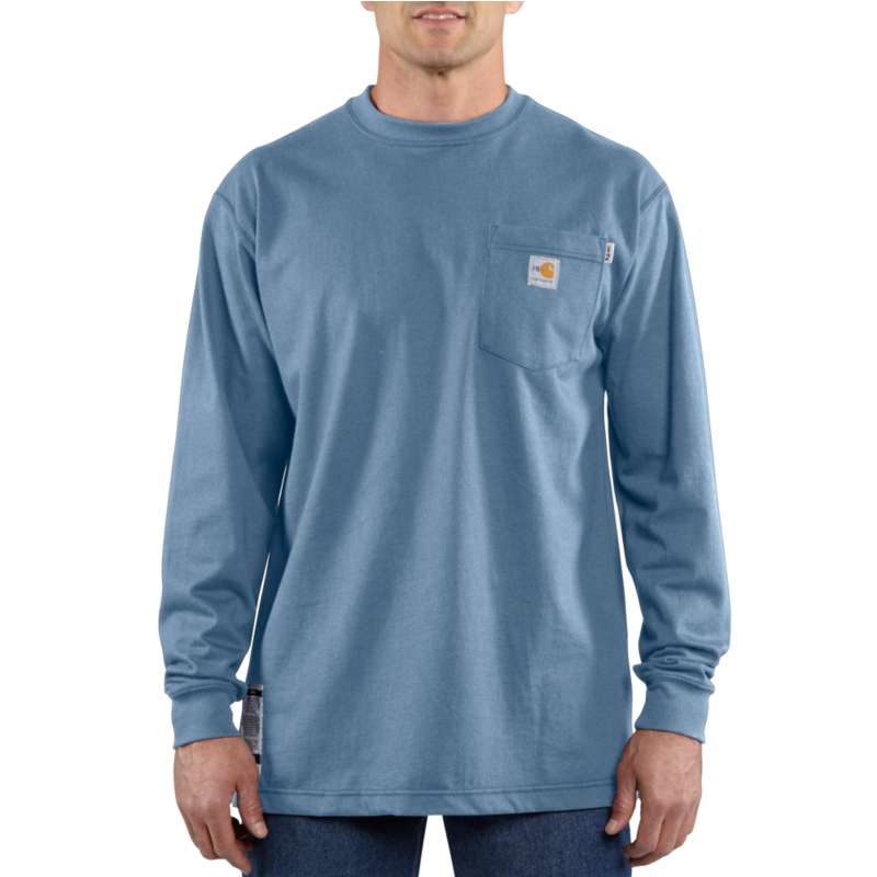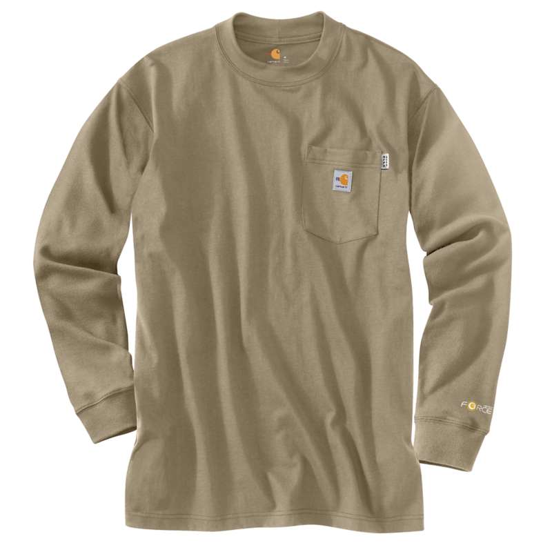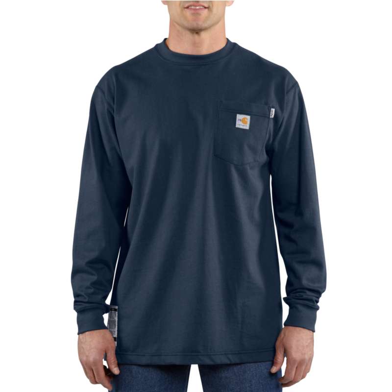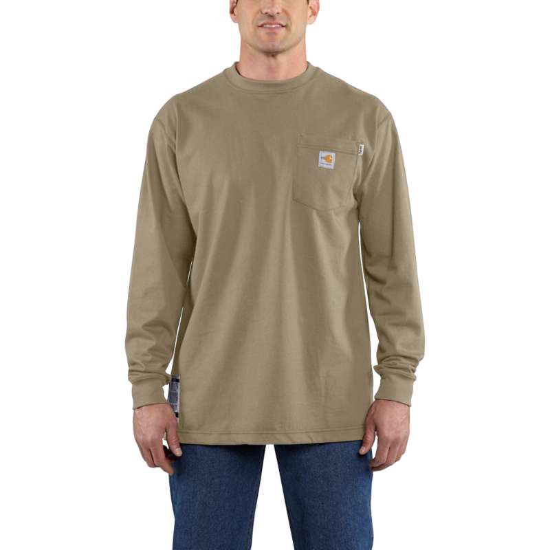 This FR long-sleeve t-shirt for men can be your go-to workwear if you need to stay covered on the job. It provides protection from exposure to flames, sparks, or other sources of heat. It is also especially suitable for workplaces with stringent safety regulations. Constructed from flame-resistant cotton jersey infused with Carhartt Force® technology, this FR long-sleeve t-shirt not only provides flame resistance but also combats sweat and dries quickly. It is lightweight and designed to allow you to work comfortably hard all day without restricting your range of motion. For easy identification, the Carhartt FR and NFPA 2112/CAT 2 labels are sewn onto the left chest pocket.