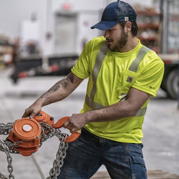 Now if you want to be seen, like really be seen on the job – this Force High-Visibility Short-Sleeve Class 2 T-Shirt from Carhartt is for you! It is not just made with reflective material but also has reflective trim which is ANSI Class 2, Level 2 compliant. So perfect when your job requires one.