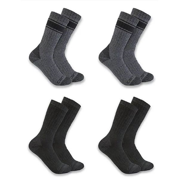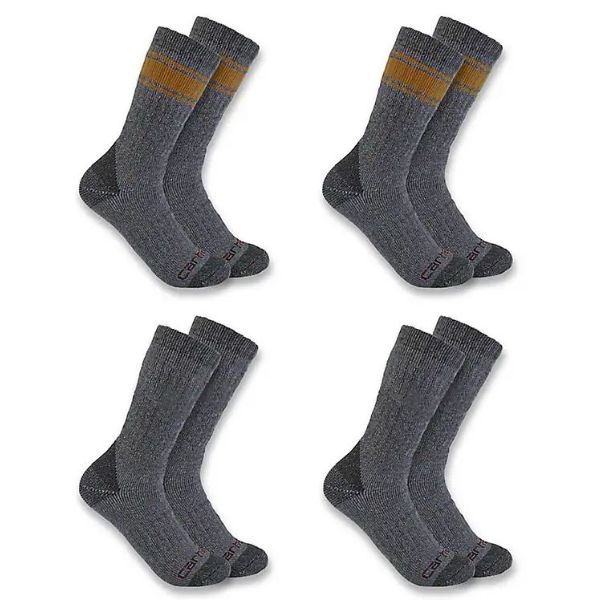 Stay cool, dry, and comfortable as you work all day with these heavy-duty crew socks from Carhartt. It is made with materials and technology that fight odor and naturally regulate temperature. These crew socks also have extra cushioning at the heel, arch, and toe – which particularly matters when you work on your feet all day. This heavyweight crew sock comes in a pack of 4 pairs.