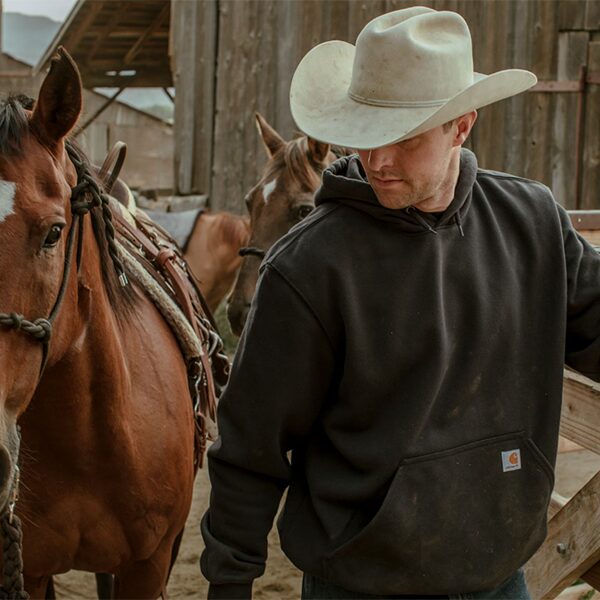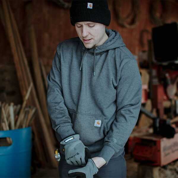 This Rain Defender® heavyweight sweatshirt is built to keep you dry and moving in light rain. This sweatshirt with loose-fit construction has you comfortably covered whether you are out working, hunting, fishing, or simply enjoying the outdoors. It comes with two front handwarmer pockets with the Carhartt patch sewn on it and a hidden security pocket inside. Formerly known as the Rain Defender® Paxton Heavyweight Hooded Sweatshirt.
