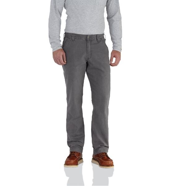 Rugged Flex® work pants are built for workers with active routines. These canvas work pants are designed with a relaxed fit that allows for an unrestricted range of motion – so you can kneel, bend, crouch, and move with ease. It is made with midweight cotton canvas and Carhartt Rugged Flex® stretch technology so it is comfortable to wear as you work hard all day. And in addition to the standard jean pockets, these work pants also feature a secure thigh pocket for carrying small valuables or tools. Formerly known as the Rugged Flex® Rigby Dungaree.