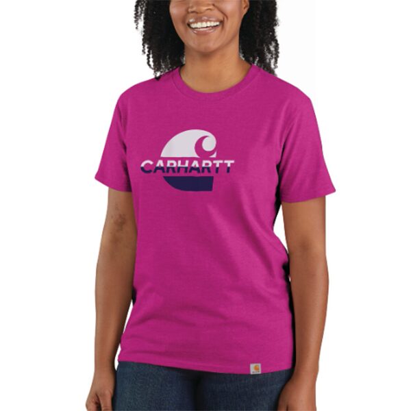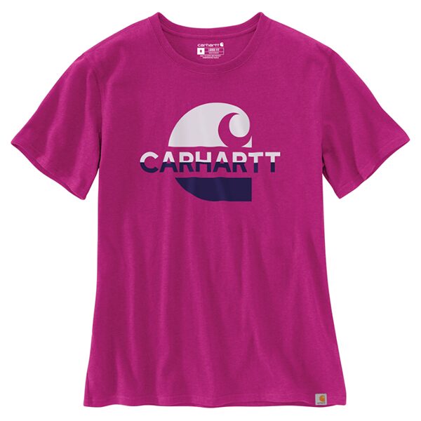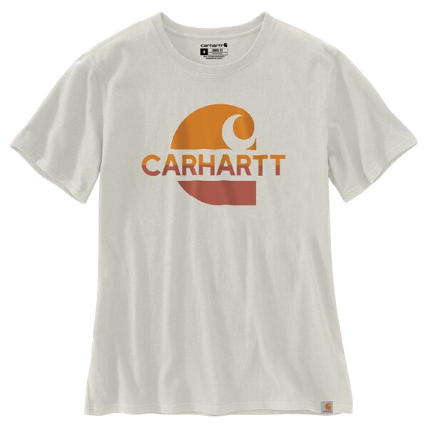 This short-sleeved t-shirt with Carhartt faded logo graphic is built in line with Carhartt legacy of providing high-quality workwear for generations. It is durable, dependable, and designed to withstand demanding work conditions. This work shirt for women is made from heavyweight cotton with a tagless neck label for smoother and more comfortable wear. The Carhartt label that embodies the enduring commitment of the company to quality and rugged style is sewn on the hem.