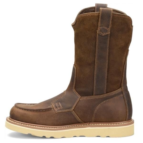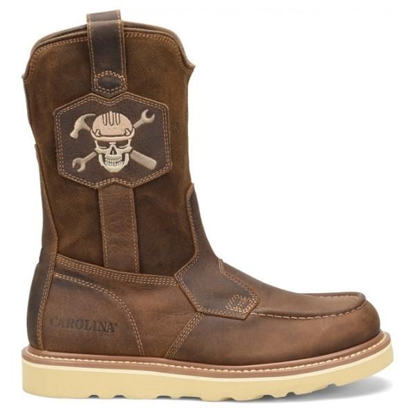 Take advantage of Flatiron Wellington durability to take on construction jobs at any time. These soft-toe style work boots are electrical hazard-, oil-, and slip-resistant. It comes with a suede upper featuring a hardhat-donning skull and tools design. Flatiron Wellington is also fitted with a non-metallic shank for structure, stability, and support. This feature is particularly useful when your workplace has metal detectors at access points. Flatiron has welt construction, removable EVA footbed insert, and oil-, and slip-resisting rubber outsole.