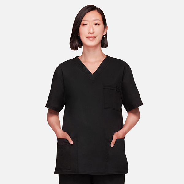 Unisex V-Neck Solid Scrub Top also comes with double-needle stitching to ensure durability. It also features a chest patch pocket with an instrument loop and a couple of lower front patch pockets with additional sectioning on the right one. Perfect for keeping your work essentials handy. This scrub top also features a back yoke which supports fit and structure and boosts durability at the same time.