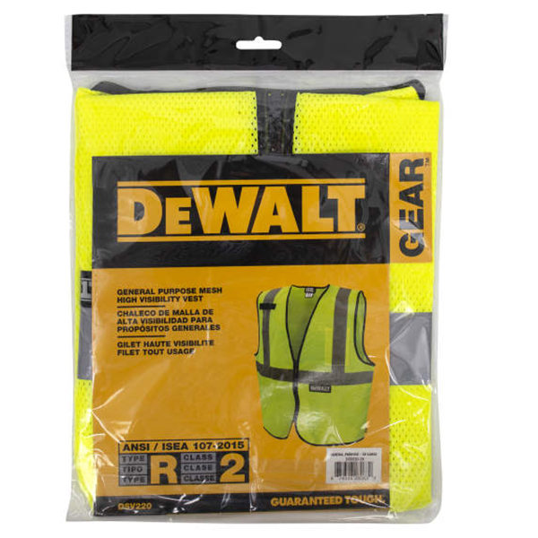 For high visibility needs on the job site, DeWalt offers this durable and breathable Economy Mesh Vest. This Class 2 ANSI-rated safety vest is made from polyester mesh at a competitive price with the brand’s highest quality and patented Guaranteed Tough protection. It’s great for properly gearing up in a job environment with hi-viz hazards. Perfect if you are a road construction worker, utility worker, manufacturing worker, or petrochemical worker.
