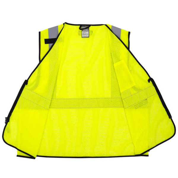 Aside from DeWalt Economy Mesh Vest’s already bright hi-vis green color, it also comes with 2 inches of sewn-on reflective tapes to further boost visibility, particularly in poorly lit conditions. The horizontal and vertical stripes help ensure that you are seen at the scene at all times. It also comes with a mic tab on the right shoulder to securely hold your microphone in place and an inner left chest pocket to carry your most basic work essentials. Its zipper front closure, on the other hand, allows for easy donning and doffing and keeps the vest comfortably in place however you move around throughout your shift.