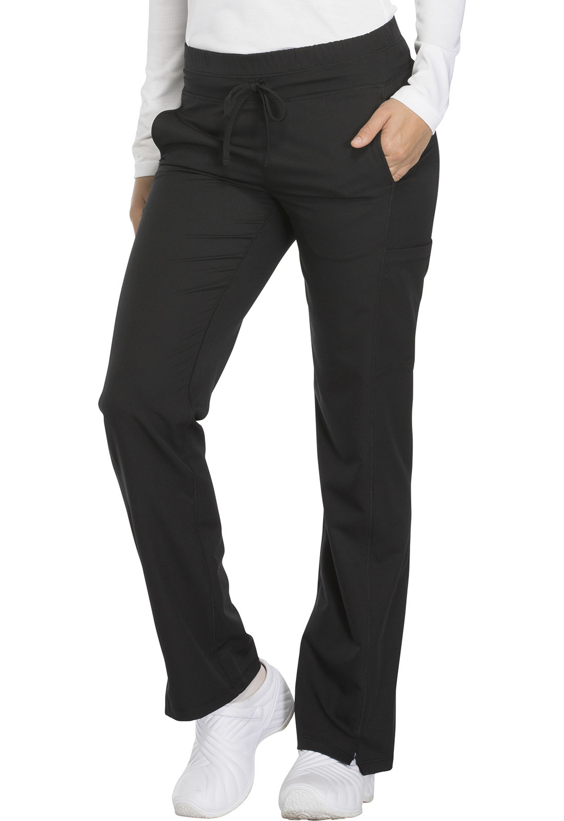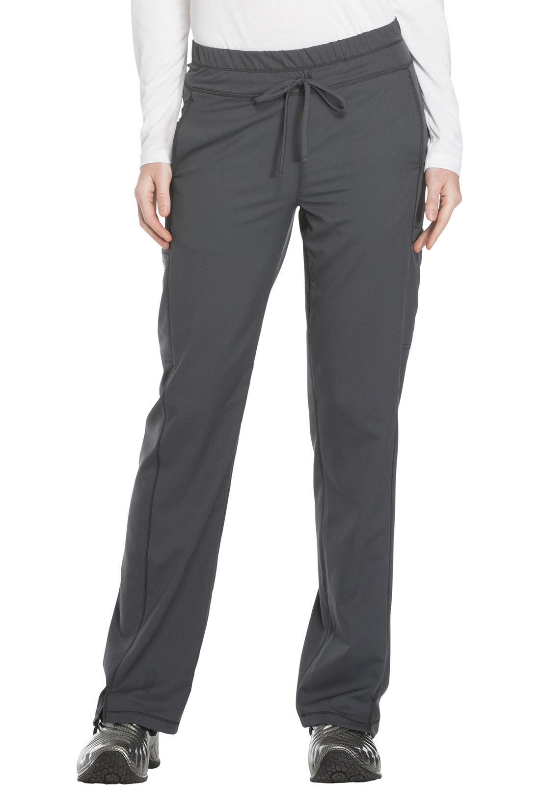 If youre looking for a scrub pant that is both stylish and functional, the athletically designed Dickies Dynamix Double Cargo scrub pants are a great option. These modern-fit pants are made with stretch material that is durable and feels great to wear throughout your shift. The pants feature a comfortable drawstring waistband that combines the ease of a pull-on elastic waistband with the adjustability of a drawstring. The Dynamix cargo scrub pants for women are designed to keep you comfortable when your days consist of being on your feet for long hours. The hybrid waistband ensures a perfect fit, while the stretch material allows for ease of movement. The discreet cargo pockets provide ample storage space for your essential instruments without affecting the streamlined look of the pants. These scrubs are perfect for medical professionals such as nurses, doctors, and other healthcare workers who need to move around frequently during their shifts.