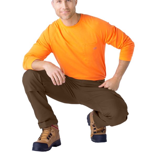 These FLEX DuraTech relaxed-fit duck cargo pants from Dickies are built to withstand any tough jobs. It is made from durable and flexible fabric that moves and stretches with you so you can move with ease whether you are working in the construction site, fruit orchard, or farmland. Comfortability is ensured with its relaxed fit construction with an active waist for comfort while durability is further enhanced with reinforced seams, pockets, and back hems. These cargo pants also have a durable water-repellent finish, double-knee reinforcement that can fit knee pads, and multiple pockets to keep your small tools organized and handy.