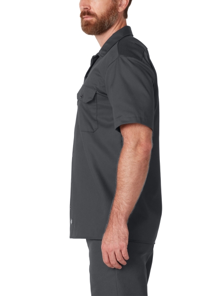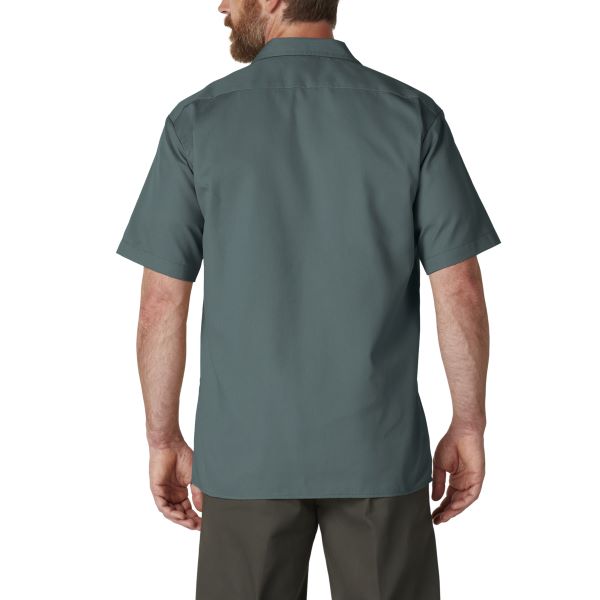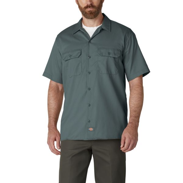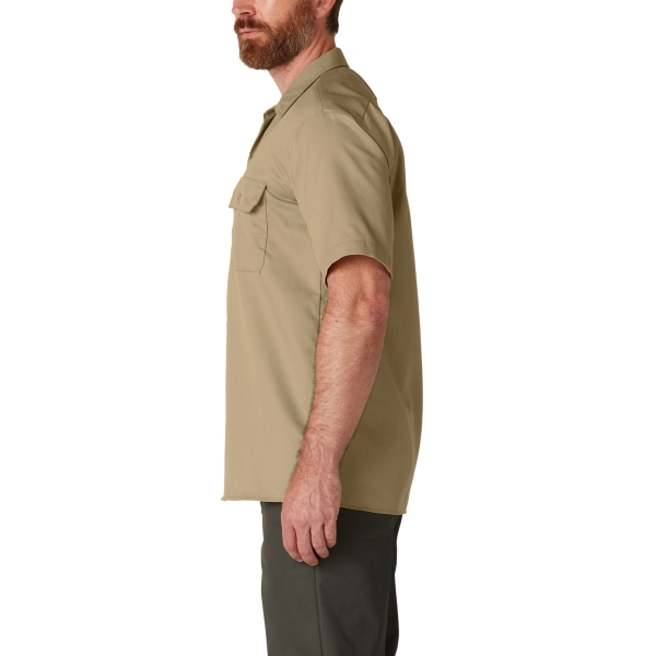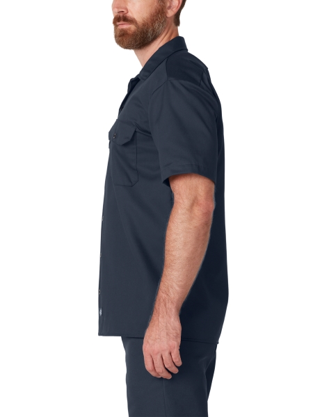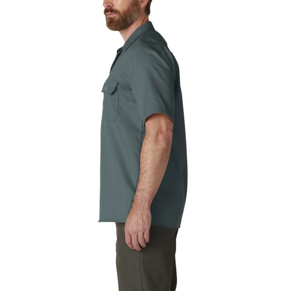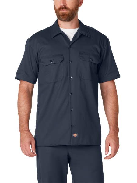 This classic short sleeve work shirt from Dickies is a great staple to your workwear wardrobe. It is made from moisture-wicking fabric that is also wrinkle-resistant. This work shirt is constructed with a generous fit through the shoulders and chest so it fits comfortably while providing mobility. It also has a couple of chest flap pockets with a pencil slot.
