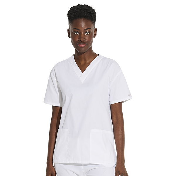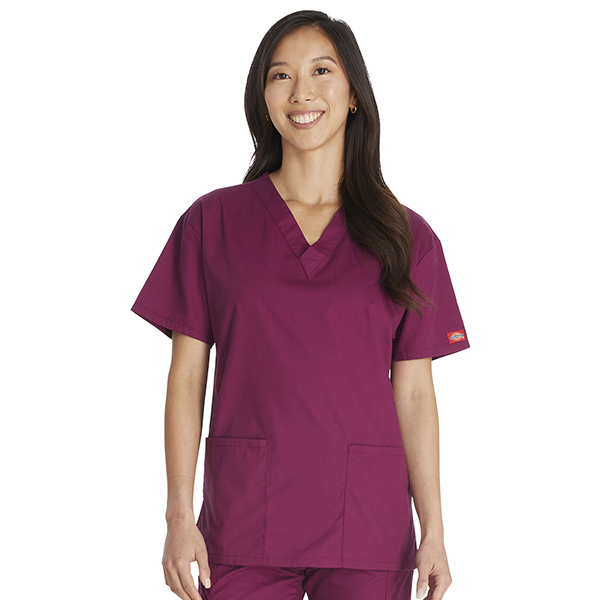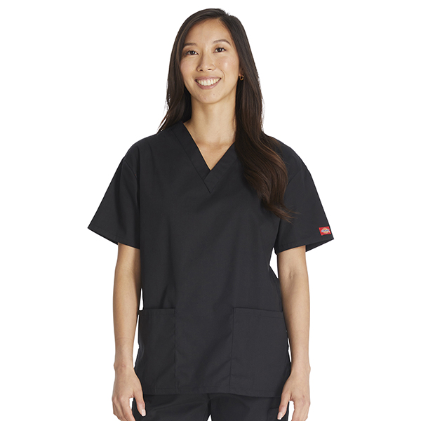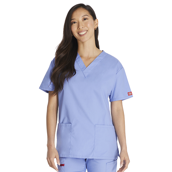 This V-Neck Top is made from brushed 55% cotton and 45% polyester poplin, a fabric combination that provides softness and durability which are essential traits in scrubs uniform to ensure you can comfortably work through your shift day in and day out. It comes in a pull-on style with a v-neck and 3 pockets design. It has a couple of patch pockets with a stretch red knit interior pocket for all colors except white which has a white knit interior pocket. It also comes with a side vent which aids not just in air circulation but in improving mobility and comfort as well. It also showcases Dickies logo twill tape on the back of the neck and the brand’s logo patch sewn on the hem of the left side sleeve.