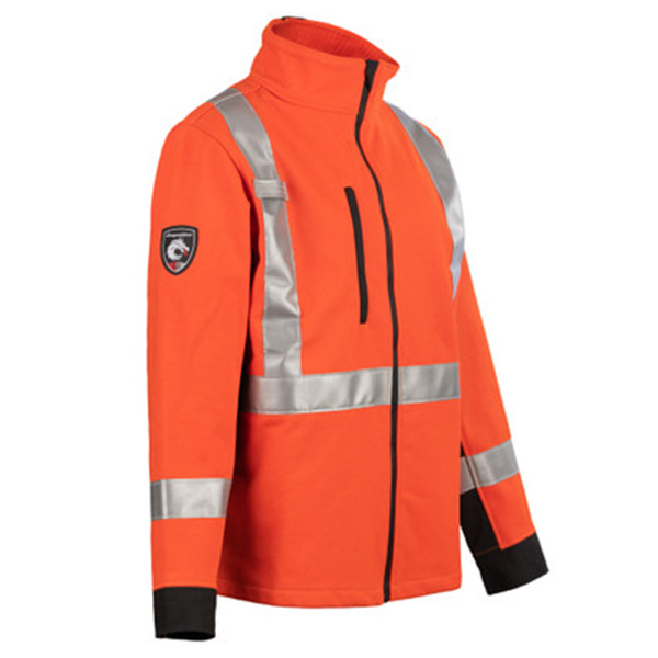 The Shield Soft Shell Hi-Vis Jacket not only offers high visibility during low light conditions but protection as well from wind, water, and snow. It also provides CAT 4 protection, CSA Z96 Class 2 Level 2 Compliant, and meets NFPA 70E and 2112 standards. Ideal if you are an industrial worker, railroad worker, manufacturing worker, or if your job site requires such protective clothing.