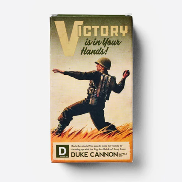 Duke Cannon is a USA-based supply company that is committed to making superior-quality grooming goods that meet the high standards of hard-working men and to giving back to the community of US Veterans. Victory comes in a limited edition WWII-era propaganda package. This is to honor the military heritage of Duke Cannon’s Big Ass Bricks of Soap.