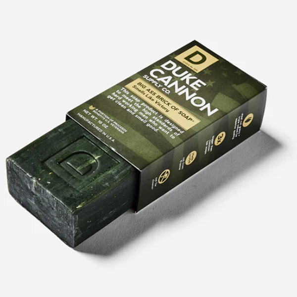 Duke Cannon’s Limited Edition WWII-Era Big Ass Brick of Soap is formulated with activated charcoal and is shaped and sized based on inspiration from those issued to G.I.’s during the Korean War. Duke Cannon’s version comes in unique scents like Victory which also conveys the message “Victory is in Your hands.”