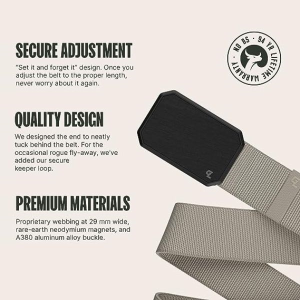 The Groove Belt is good for the office,  the woods, the backyard, and everything in between! Just adjust to fit once and forget. The Groove Belt has the perfect amount of stretch giving you the most comfortable all-day fit ever. The buckle uses high strength, neodymium magnets for an easy, seamless snap-on/snap-off. And includes what we like to call Stiff-Tec (aka: no folding in your belt loops). Proprietary webbing, rare-earth neodymium magnets and an A380 aluminum alloy buckle, so that when the apocalypse hits and we all move to Mars, you’ll be ready for anything!