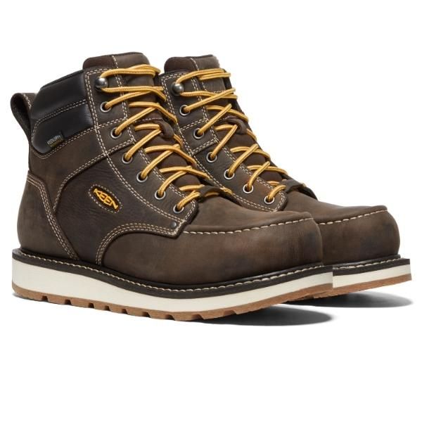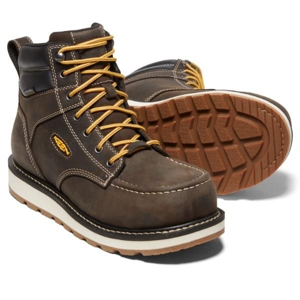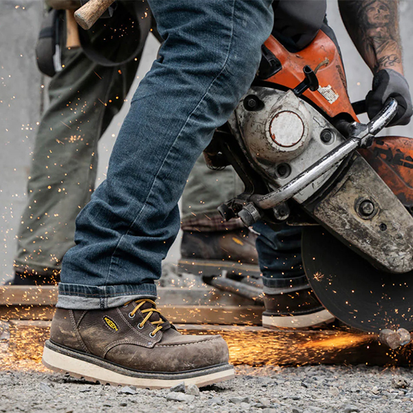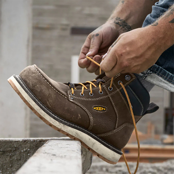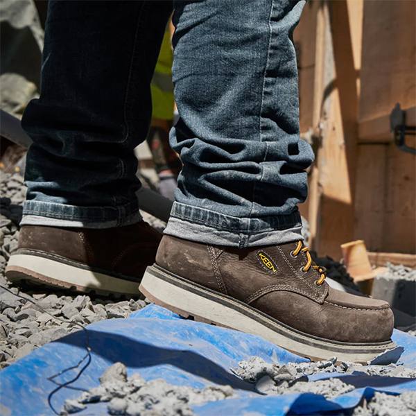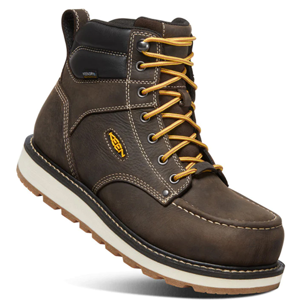 Work comfortably and in style with KEEN’s Cincinnati 6-inch Waterproof Boot. These work boots with moc toe and wedge heels come with lightweight carbon fiber toe protection. It is also made with full grain barnyard-resistant waterproof leather so you know that it’s comfortable and durable. Perfect for the rigorous jobs on the ranch, farm, warehouse, or construction site.