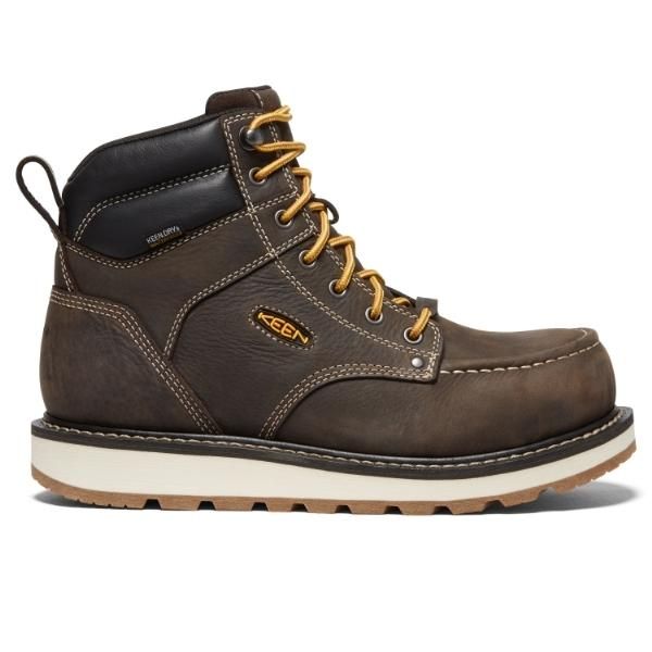 Cincinnati 6-inch Waterproof Boots come in a Dark Chocolate color with a moc toe and wedge heel design that makes them quite versatile and suitable for everyday work wear and for weekend outings.