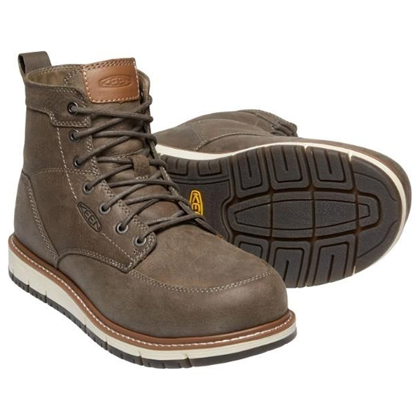These San Jose 6″ Boots feature asymmetrical lightweight aluminum toes and shellback heel support. In addition to its KEEN Luftcell PU midsole, it also comes with a removable PU footbed, nylon shank, and oil and slip-resistant non-marking rubber outsole. These work boots are also ideal for providing a secondary source of protection when you’re exposed to live electrical circuit hazards because they’re electrical hazard or electrical shock resistant.