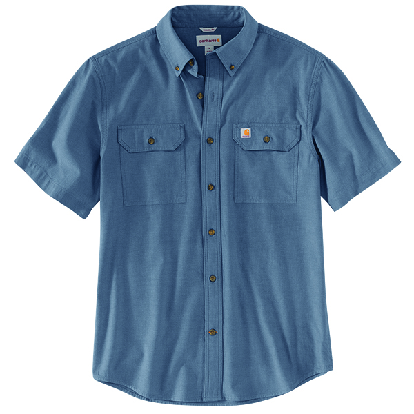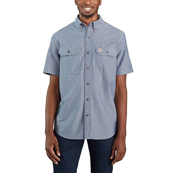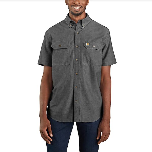 You want to look your best whether you are at the front office, on the worksite, or anywhere in between, so this loose-fitting midweight chambray short-sleeve shirt from Carhartt is for you. Its lightweight cotton fabric keeps you comfortably cool while its design allows you to move with ease. This work shirt comes prewashed to attain that soft finish and to reduce shrinkage.