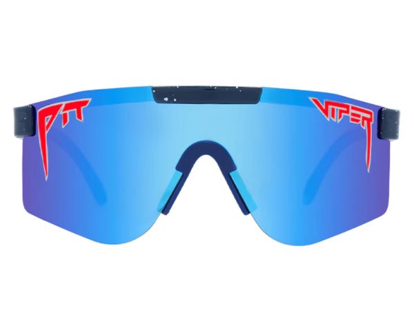 • Big blue lenses that wrap around the eyes with the Pit Viper in red design make for cool and fashionable styling