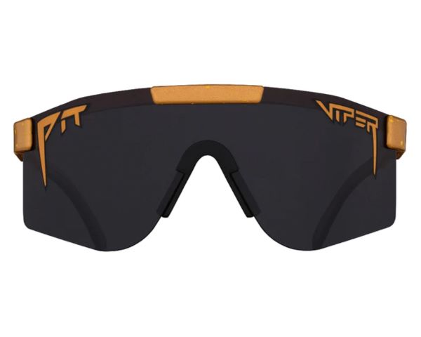 - Black lenses that wrap around the eyes with the Pit Viper and frame in orange color with a unique shimmer treatment, allow for easy and cool styling