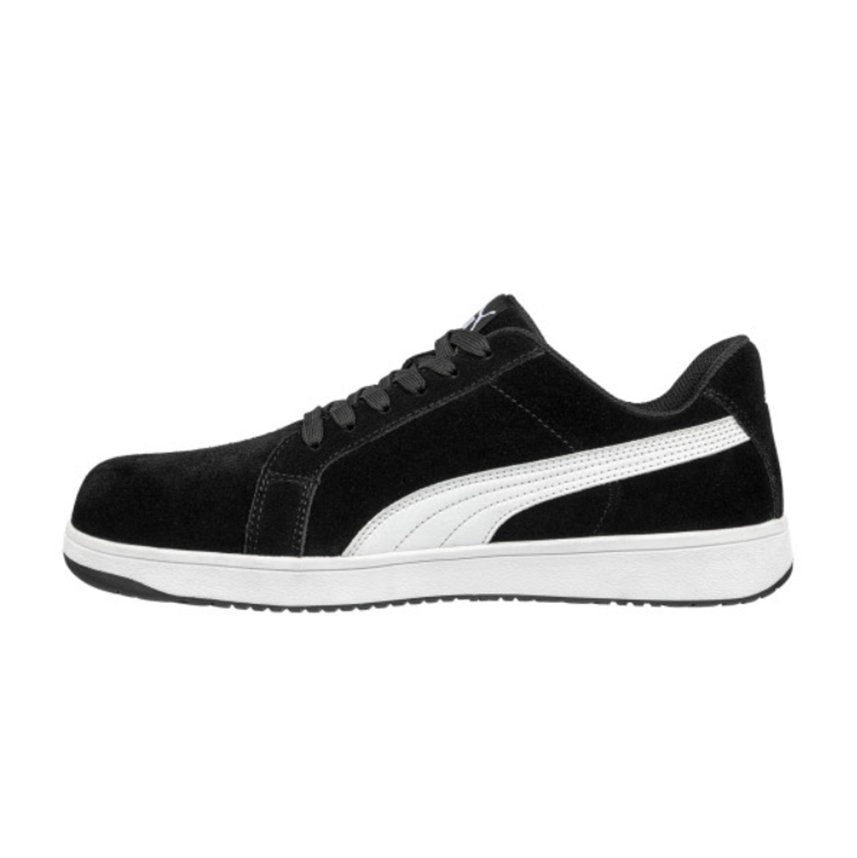 These vintage-looking safety work shoes from Puma Safety are adapted to fit women sizes. Iconic great pair to have if you are working in production, construction, warehouses, or logistics. This low-top style with composite toe, and electrical hazard-proof features work shoes come in a classic white and black color combination. Iconic has a suede leather upper, a BreathActive functional lining, an evercushion® RELIEF footbed, and a HERITAGE sole – all put together to increase support and comfort to your feet. The rubber outsole with a special herringbone pattern is not only heat and slip-resistant but also particularly has a technology called idCELL elements. Iconic low-top safety work shoes are a great pair to have when you are working on your feet all day, particularly when your job requires frequent kneeling down.