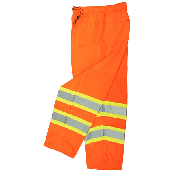 Class E Surveyor Safety Pants are made from 100% polyester mesh bottom and 100% polyester solid top. It features a full-length zipper on both legs allowing for easy donning and doffing – no need to remove your boots because you can easily zip and unzip them. It also has an elastic waistband with a cord to allow for a customizable fit. It also features a couple of front slash-through pockets that you can use to easily reach your original clothing and a couple of back pockets with flap closures to securely hold your work essentials.