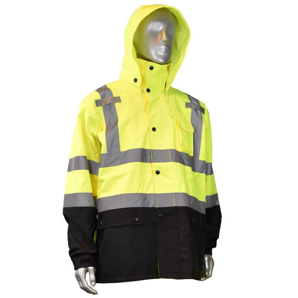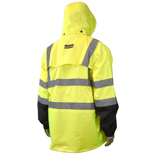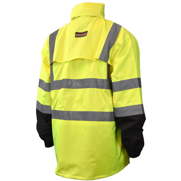 This RadWear General Purpose Rain Jacket from Radians comes with Reflectivz® weatherproof and high visibility technology to keep you dry and protected during the rainy or wet season. This Class 3 ANSI-rated rain jacket is constructed from PU-coated Oxford hi-vis polyester so you know that it’s built to withstand rugged use, protect from the harsh weather, and keep you seen at all times on the job site. Ideal for construction workers, flaggers, airline personnel, roadway & temporary traffic controllers, and other general purposes.