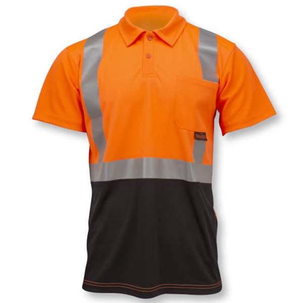 RadWear High Visibility Color-Blocked Safety Short Sleeve Polo’s Max-Dri technology allows for more comfortable wear by managing moisture. It helps in drawing the sweat away from the skin while accelerating evaporation leaving you feeling much cooler. The silver reflective tapes are heat-transferred as well rather than sewn to boost a more regular t-shirt feel. These reflective tapes help in improving visibility to equipment operators and co-workers in construction, machine operation, and general worksite settings.