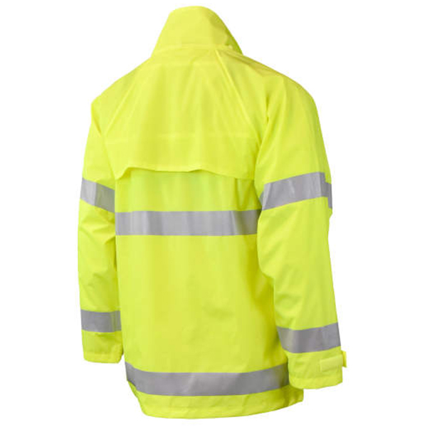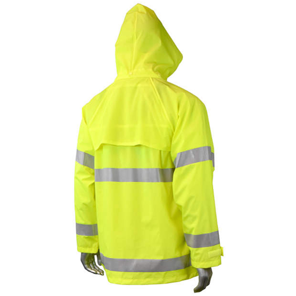 Gear up for the rainy or wet season with Radians’ RadWear High Visibility Rainwear Jacket with ETP Collar. This Type R Class 3 ANSI-rated rainwear jacket is constructed with a hi-vis green PVC exterior and nylon interior to ensure visibility and resistance against the elements. Great for flaggers, airline personnel, roadway & temporary traffic controllers, landscapers, construction workers, or nighttime workers.