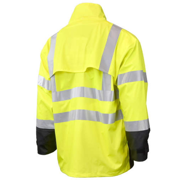 This ANSI/ISEA-rated RadWear High Visibility Rainwear Jacket also comes with a snap front closure, vented cape back, and adjustable cuffs to further enhance comfort and protection, especially during extended wear. It also has a couple of lower font patch pockets with a flap and snap button closure to secure your everday carry or EDC essential items.