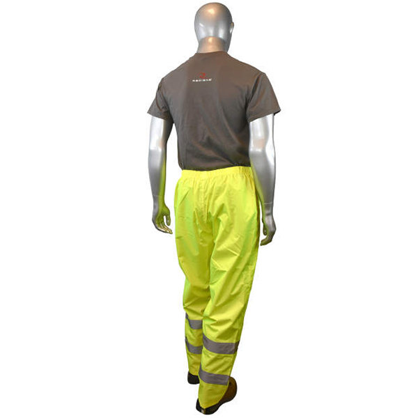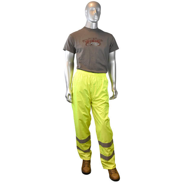 Radians offer these RadWear Lightweight Rainwear Pants for your daily protective workwear during the wet or rainy season. These lightweight rain pants are made from PU-coated hi-vis polyester material with Reflectivz® weatherproof and high visibility technology. So not only are you protected from the rain and water but your visibility is ensured as well while working in low light conditions. Ideal for nighttime workers, flaggers, airline personnel, construction workers, or roadway and temporary traffic controllers.