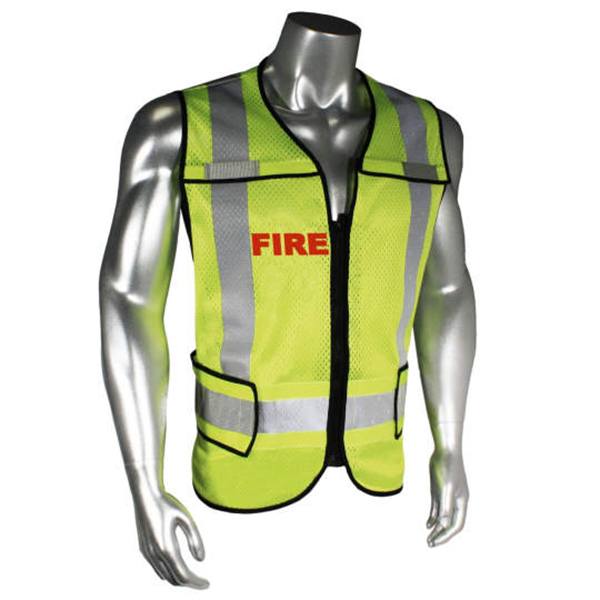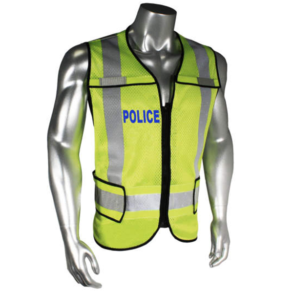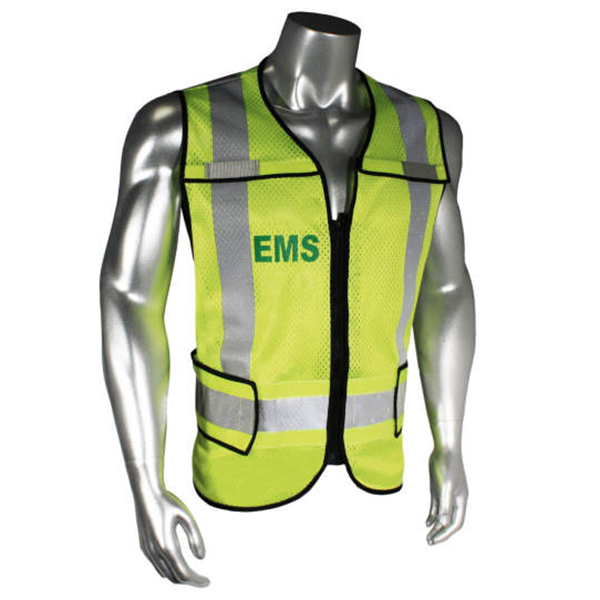 Radwear USA LHV-5-PC-ZR Safety Vest is made from hi-vis green polyester mesh that is not only durable but breathable as well – perfect for rugged use and extended wear. It also comes with black trimming and 3M Scotchlite reflective material to enhance visibility while working in poorly lit conditions. It also features printed name identification on the front and back for POLICE, EMS, and FIRE (there is also one option with no prints).