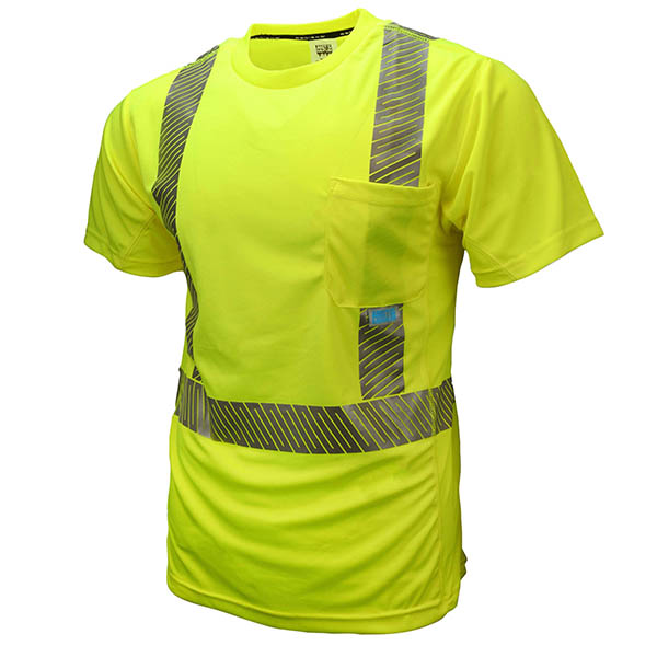 Short Sleeve Cooling T-Shirt is made from 100% Max-Dri wicking polyester jersey which pulls moisture away and keeps it moving so that you are left feeling cooler and drier – even when the job gets tough. It also comes in a bold High-Vis Green color with 2 inches of heat-transferred reflective tape to make sure that you are seen on the scene at all times!