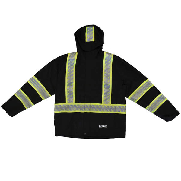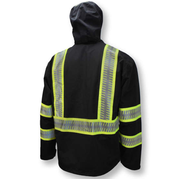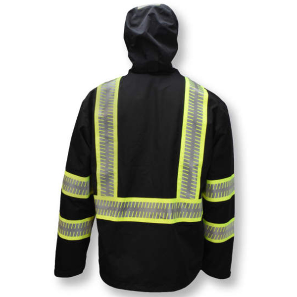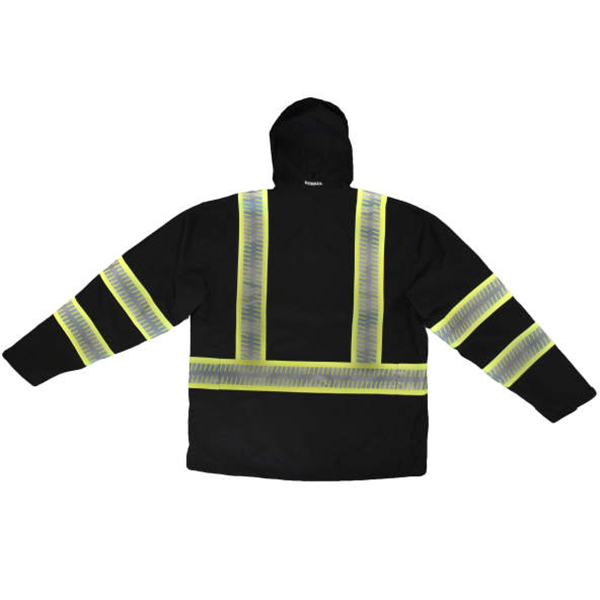 - Segmented reflective tape on body, arms, and hood