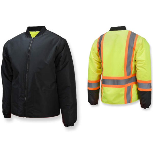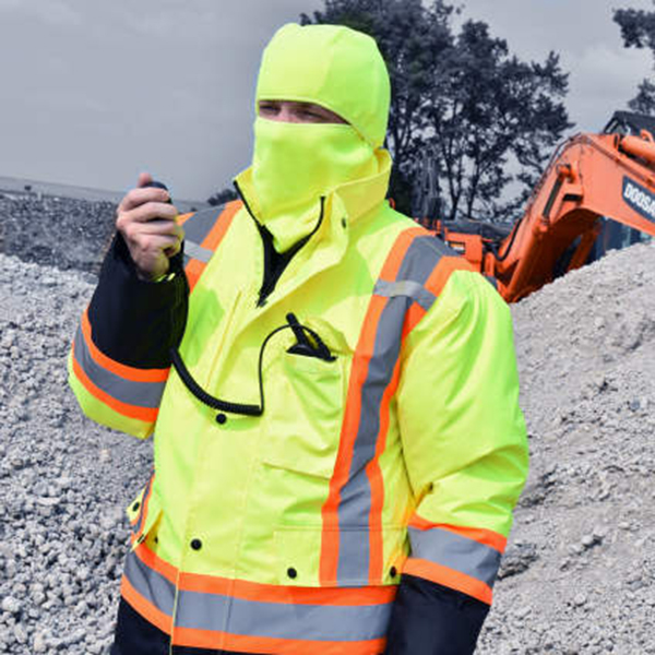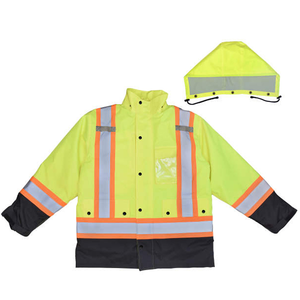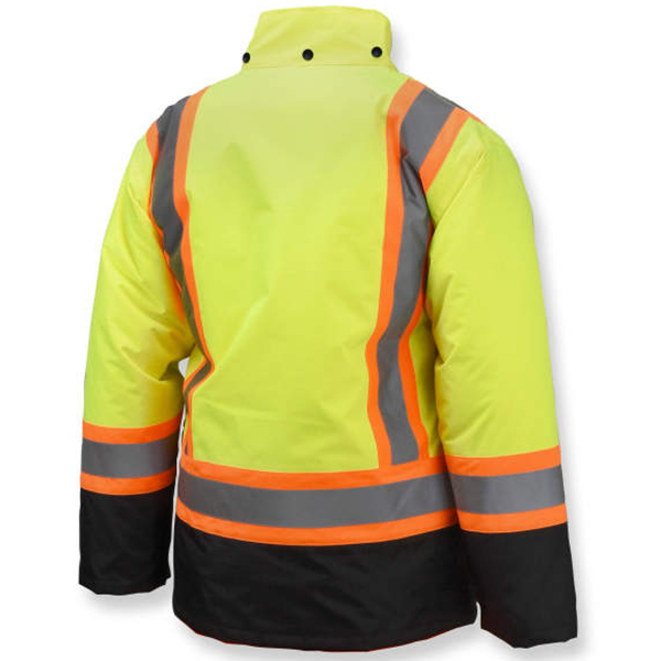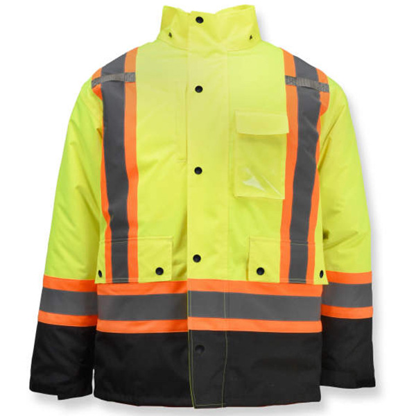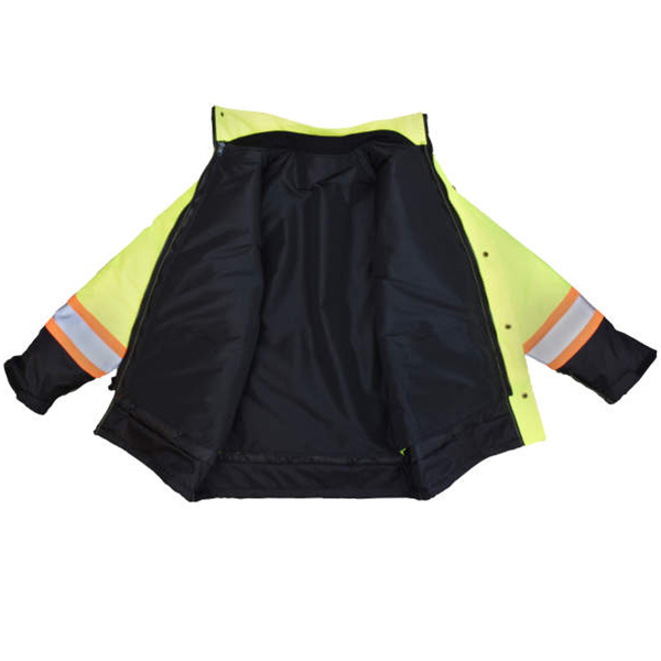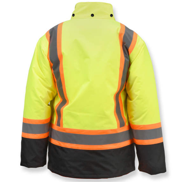 Weatherproof Parka with Zip-Out Reversible Bomber Jacket is great for roadway construction workers, night workers, flaggers, or airline ramp personnel.