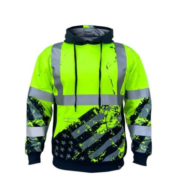Show off your patriotism in H-Vis. These ANSI rated Class 3 rated safety gear are warm and comfy. Comes with a large hood and a soft combed fleece inner shell.