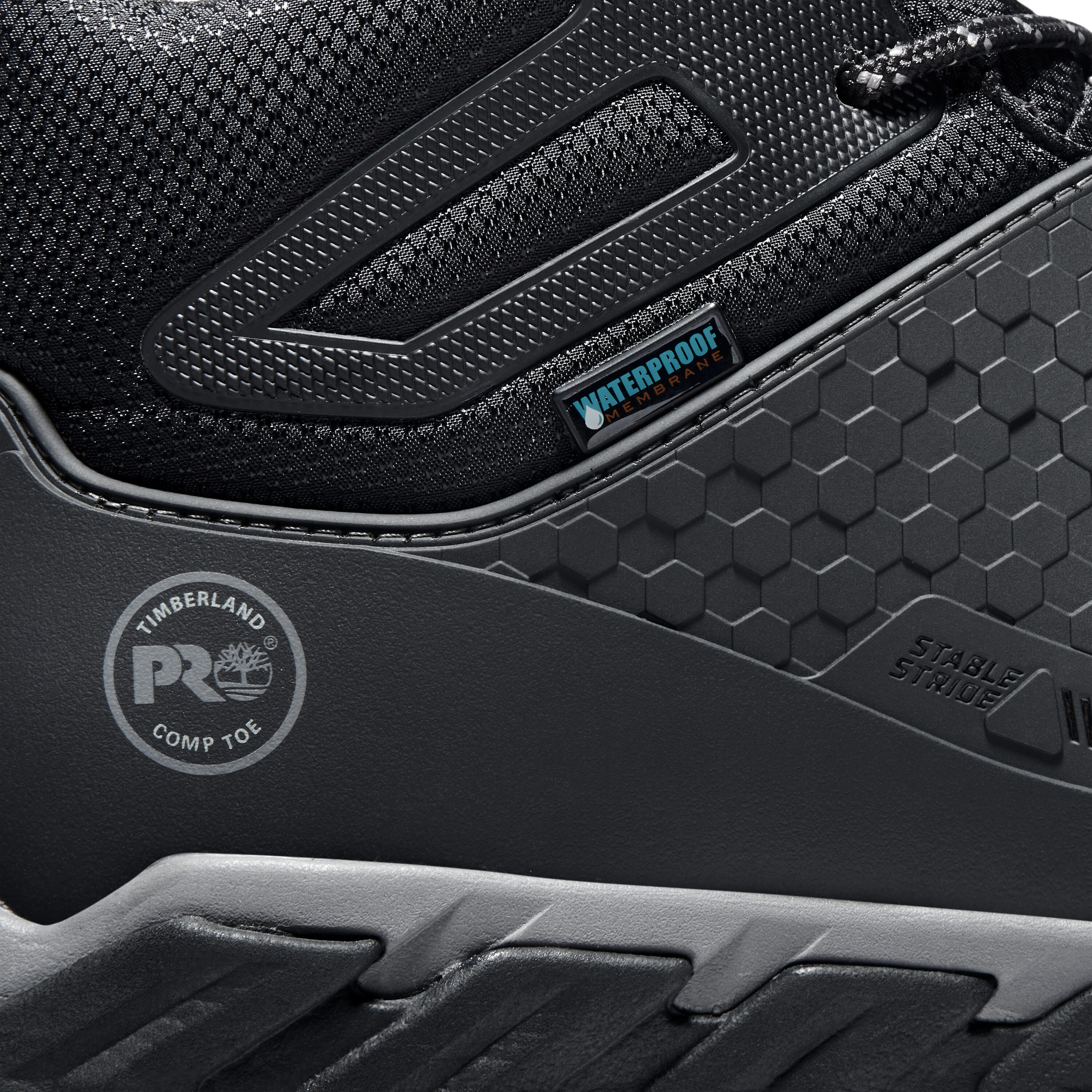 - Heat-, oil-, slip-, and abrasion-resistant, non-marking Timberland PRO® rubber outsole